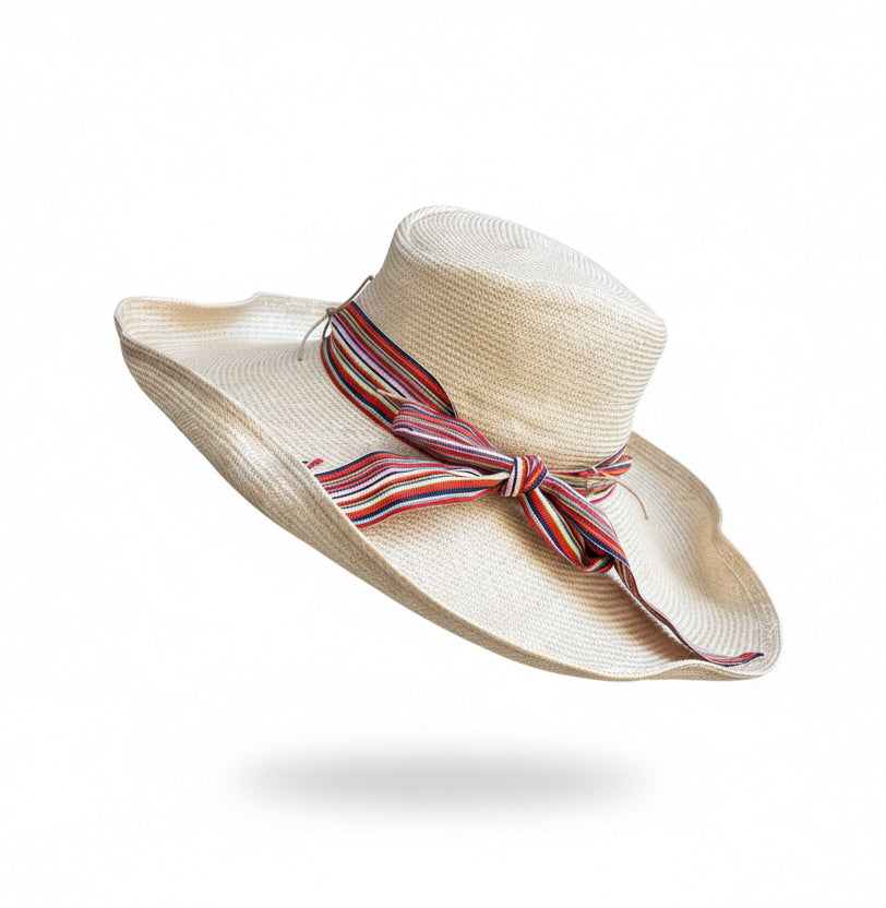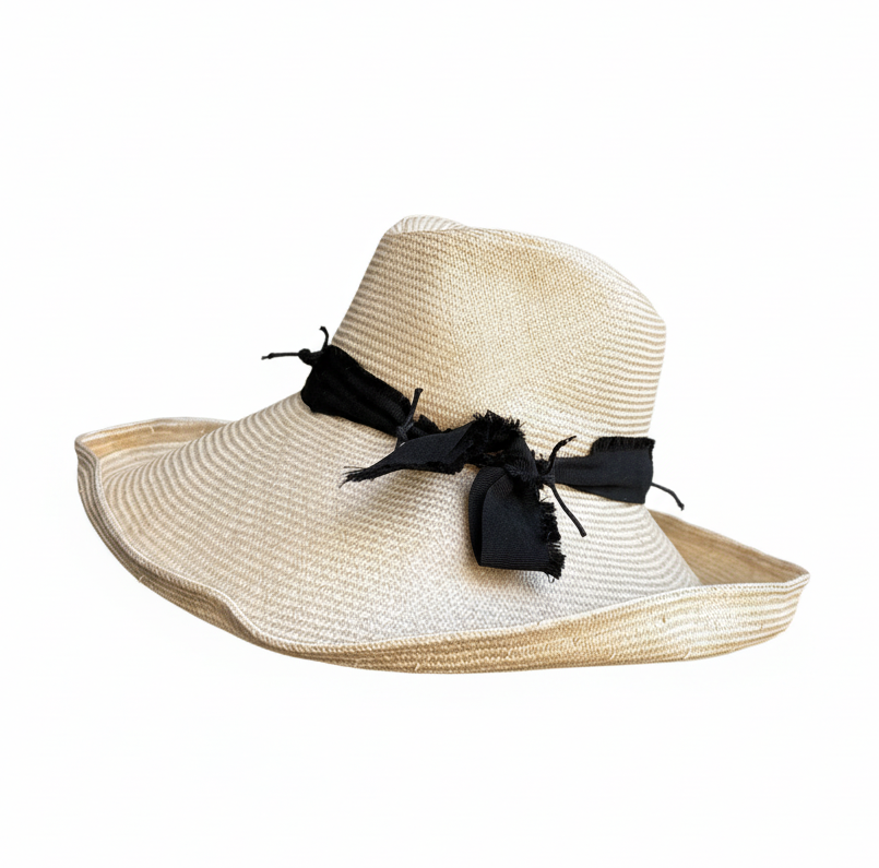 Our Maldives fine quality straw travel hat, with wired brim for shaping and adjustable tie to fit most head sizes.
