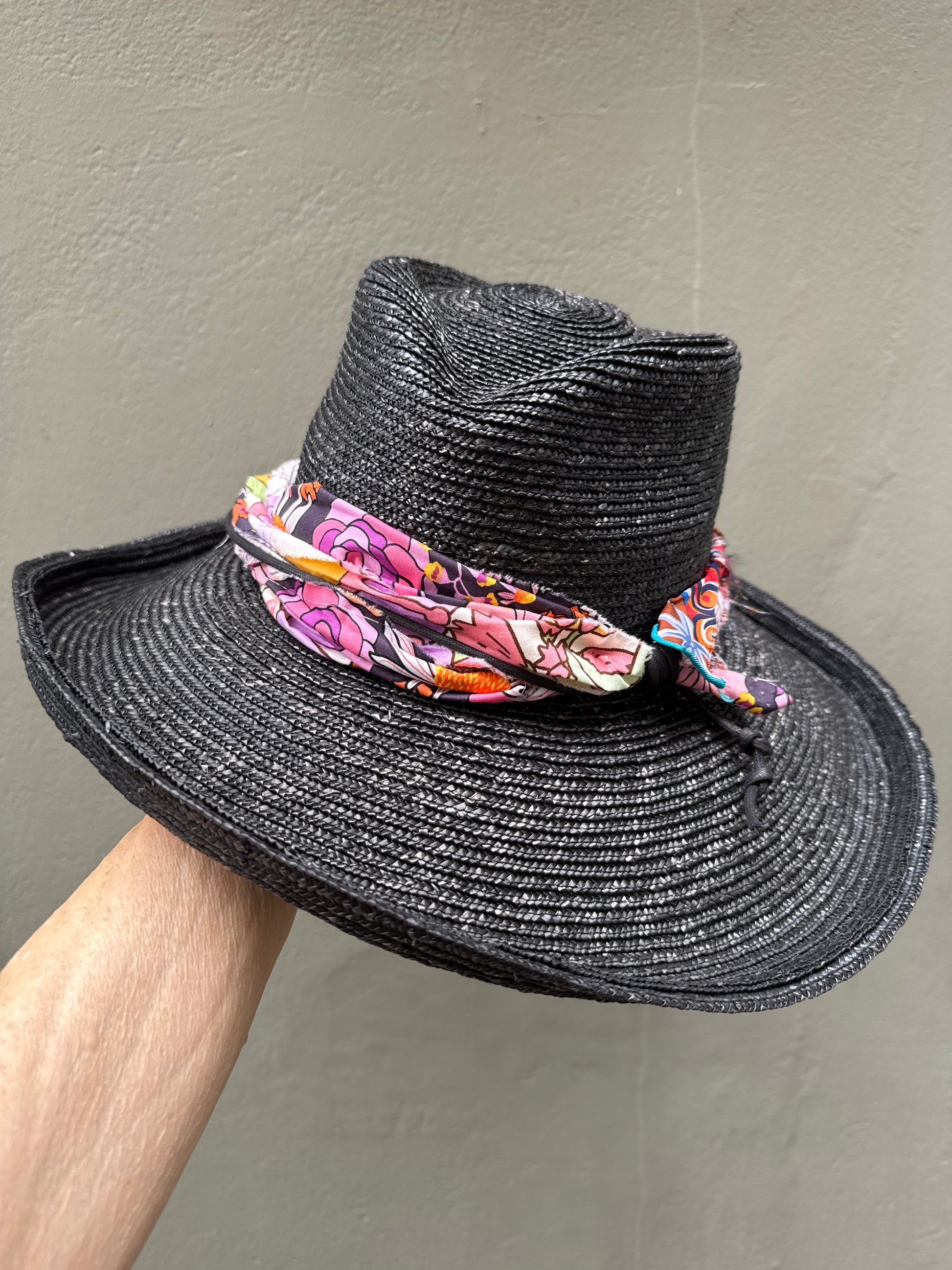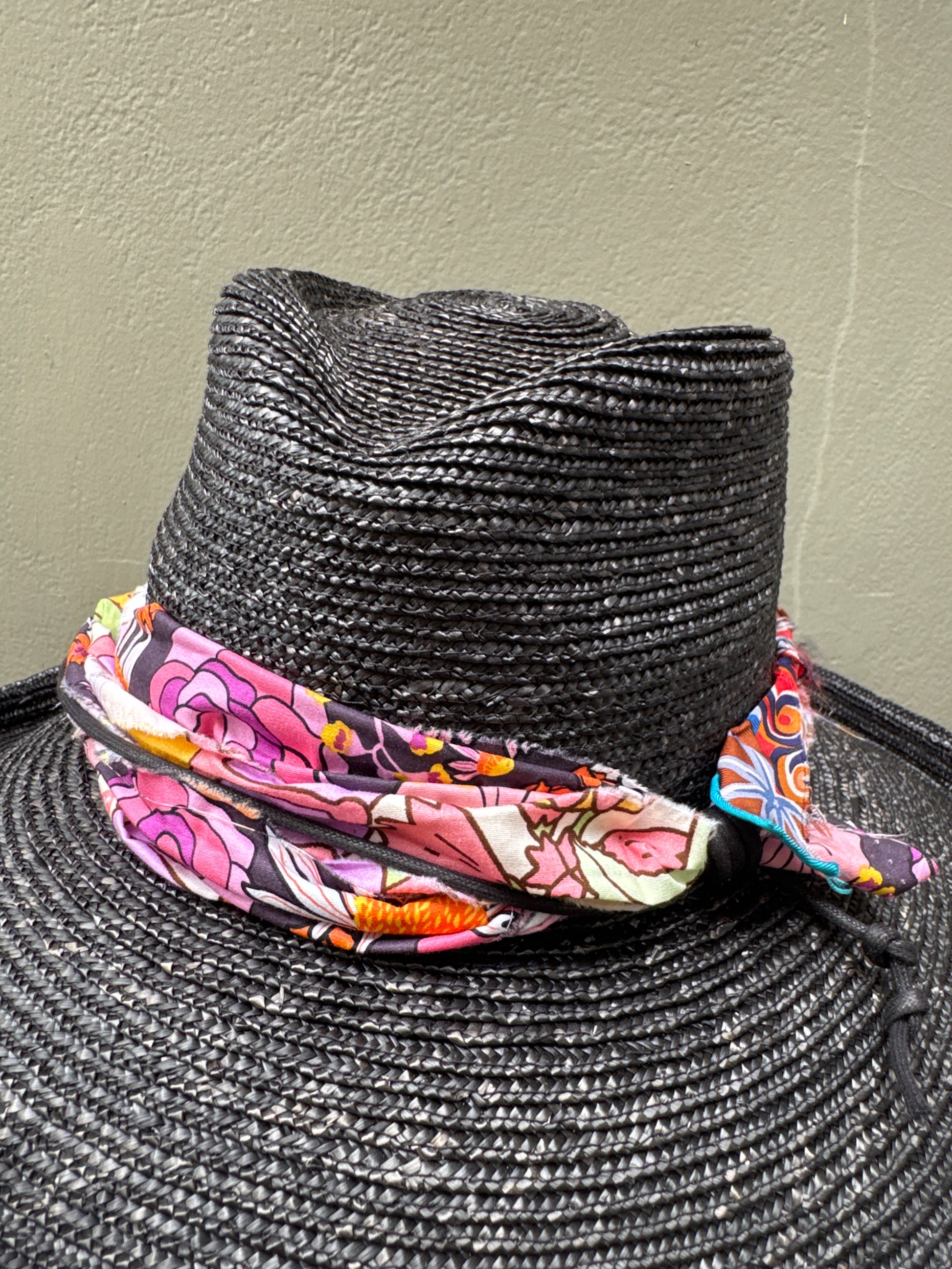 Our floaty Cuenca style hat is now available in 2 brim widths. Choose between the many band options and please tell us head measurement.